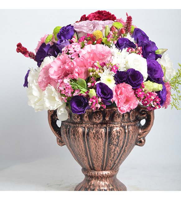Ella Özel Tasarım Seramik Saksıda Mor Lisyantus, Pembe Lisyantus, Papatya, Kalanşo, Husnu Yusuf, Yeşil Biçme, Kırmızı Gül ve Mevsim Yeşilliği Ella hakkında bilmeniz gerekenler var Ella’nın saksı yüksekliği 20 cm. Çiçeklerle beraber toplam yüksekliği 45-55 cm aralığındadır. Ella’nın suyu özel besin içermektedir. Ancak farklı sap ömürlerinden dolayı ömrünü tamamlayan çiçeklerin kutudan çıkarılması Ella’nın ömrünü artıracaktır. Zarif, şık ve eşsiz bir çiçek göndermek isteyenlerin bir numaralı tercihi Ella.