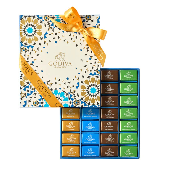 Bayram özel kutusu ile sevdiklerinize ithaf edilen en tatlı hediye! 56 adet sütlü, sütlü fındıklı, bitter ve bitter fıstıklı sargılı napoliten çikolatalardan oluşan bu çikolata kutusu ile, Godiva çikolatasının eşsiz lezzetine doyasıya varın!