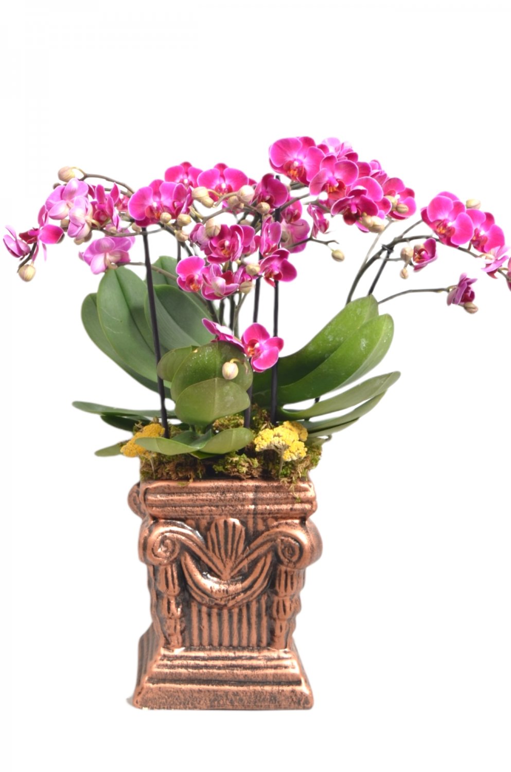 Ürün İçeriği: Handmade Tasarım Dekoratif Dizayn Saksıda Midi Mor Orkide Midi Mor Orkide : 1 Adet Dekoratif Dizayn Saksıda Midi Mor Orkide hakkında bilmen gerekenler: Aydınlık ortamları sever ancak direkt güneş ışığına maruz kalmamalıdır. Haftada 1-2 defa sulanabilir. Yüksek neme ihtiyaç duyar. Toksik madde içermez. Boyu: 40 - 45 cm Güneş gören fakat direkt güneş ışığına maruz kalmayan aydınlık bir pencere yanı onlar için en uygun yaşam alanı olacaktır. Ürün, 1 adet Midi Mor Orkide ve Görseldeki dekoratif dizayn saksı ile birlikte gönderilir.