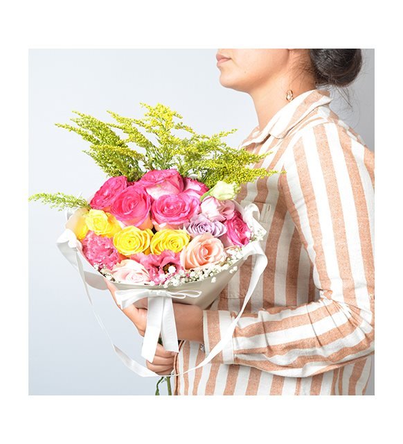 Minks Özel Tasarım Çiçek Kutusunda Renkli Güller, Soly ve Mevsim Yeşillikleri. Minks hakkında bilmeniz gerekenler şeyler var! Minks sana ulaştıktan sonra uzun süre taze kalabilmesi için öncelikle temiz su ve temiz bir vazoya ihtiyaç duyar. Bir de doğrudan maruz kalmayacağı şekilde güneş ışığı görmek ister. Bu güzel buketi teslim aldıktan sonra içerisinde bulunan çiçekleri vazoya yerleştirilmeden önce suya değecek kısımlardaki yapraklarını temizlemen ve saplarını uçlarından verev keserek suya koyman gerekiyor. Zarif, şık ve eşsiz bir çiçek göndermek isteyenlerin bir numaralı tercihi Minks. Yaklaşık Buket Boyutu: 50-55 cm
