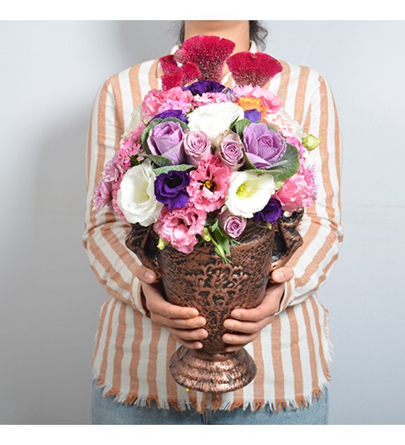 Odessa Özel Tasarım Seramik Saksıda Lila Gül, Pembe ve Mor Lisyantus, Süs Lahanası ve Mevsim Yeşilliği Odessa hakkında bilmeniz gerekenler var Odessa’nin saksı yüksekliği 20 cm. Çiçeklerle beraber toplam yüksekliği 45-55 cm aralığındadır. Odessa ‘nin suyu özel besin içermektedir. Ancak farklı sap ömürlerinden dolayı ömrünü tamamlayan çiçeklerin kutudan çıkarılması Odessa ‘nin ömrünü artıracaktır. Zarif, şık ve eşsiz bir çiçek göndermek isteyenlerin bir numaralı tercihi Odessa.