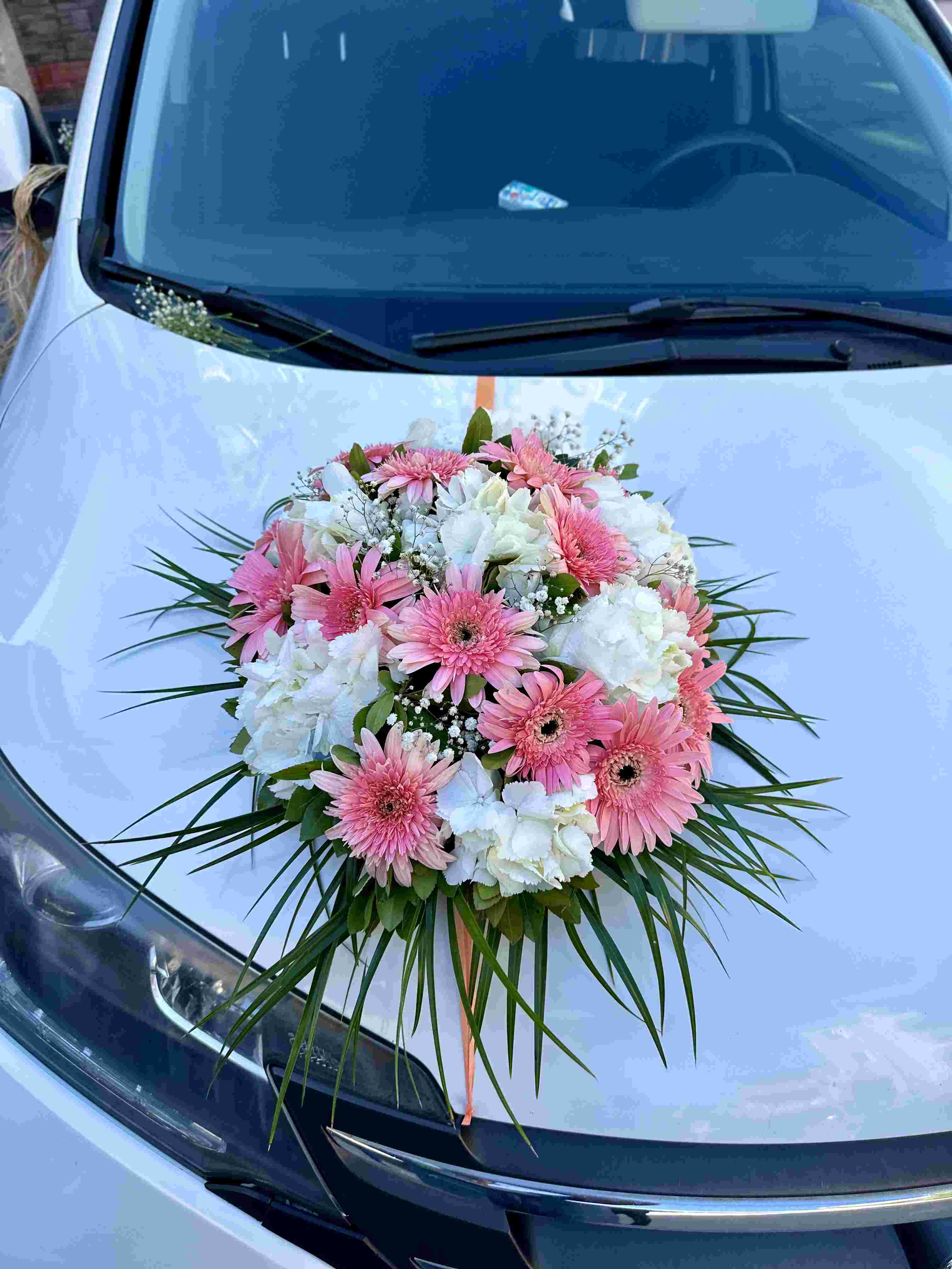 Zarif ve Şık Süsleme: Beyaz gerbera ve tüller ile süslenmiş gelin arabanızla göz kamaştırın.