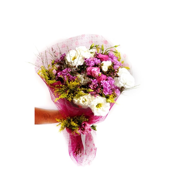 Princess of Lisianthus; Soly, Pembe Papatya, Beyaz Lisyantus ve Mevsim Yeşilliklerini birleştirdik size özel taze çiçek buketi yaptık.